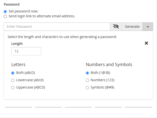 - Password: رمز عبور برای حساب ایمیل. سعی کنید رمز عبور قوی و پیچیده ای انتخاب کنید تا امنیت حساب ایمیل شما تضمین شود. البته خود سیستم امکان ایجاد رمز با تنظیمات مختلف را در اختیار شما قرار می دهد.